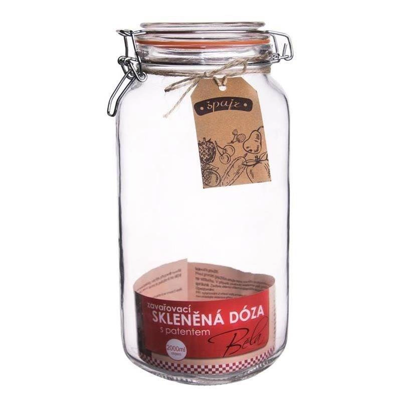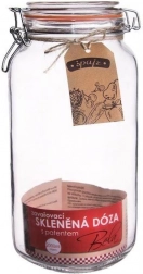 Praktická skleněná dóza o objemu 2 litry s patentním uzávěrem a gumovým těsněním spolehlivě ochrání potraviny před vlhkostí a vzduchem. Je vyrobena z kvalitního silného skla, má pevný kovový klip a těsný uzávěr, díky kterému je ideální pro uchovávání sypkých potravin i zavařování a nakládání. Stylový vzhled se hodí do každé kuchyně a je skvělý i jako dárkové balení domácích dobrot.