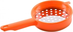 Dlouhá rukojeť zajišťuje komfortní úchop, menší opěrné ucho umožní bezpečné položení na mísu či hrnec. Praktické očko na konci rukojeti slouží k zavěšení na kuchyňskou lištu. Výrobek dodáváme v náhodném barevném provedení (bílá, žlutá, oranžová). Navíc jej snadno vyčistíte – je vhodný do myčky nádobí.