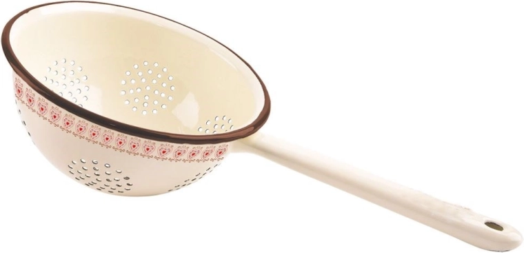 Objevte spolehlivý pomocník do kuchyně – emaliovaný cedník TONCA v béžové barvě s barevnými zdobeními. Nabízí průměr 20 cm, výšku 10 cm a celkovou délku 40 cm včetně rukojeti. Smaltovaný povrch je hygienický, odolný proti pachům a snadno se udržuje.
