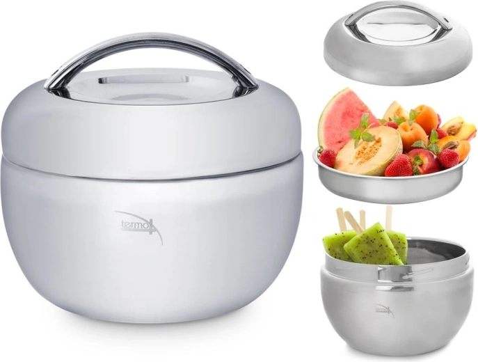 Vnější termo mísa, vyjímatelná vnitřní miska a víko s madlem společně udržují pokrmy déle teplé či studené – ideální na polévky, přílohy i dezerty.