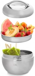 Lehký a odolný termo jídlonosič z nerezové oceli je ideální pro uchování teplých obědů i studených dezertů. V létě poslouží na servírování zmrzliny nebo chlazených pochoutek, v zimě udrží polévky či hlavní jídla déle teplá. Hladký vnitřní povrch zaručuje snadné čištění a komfortní používání.