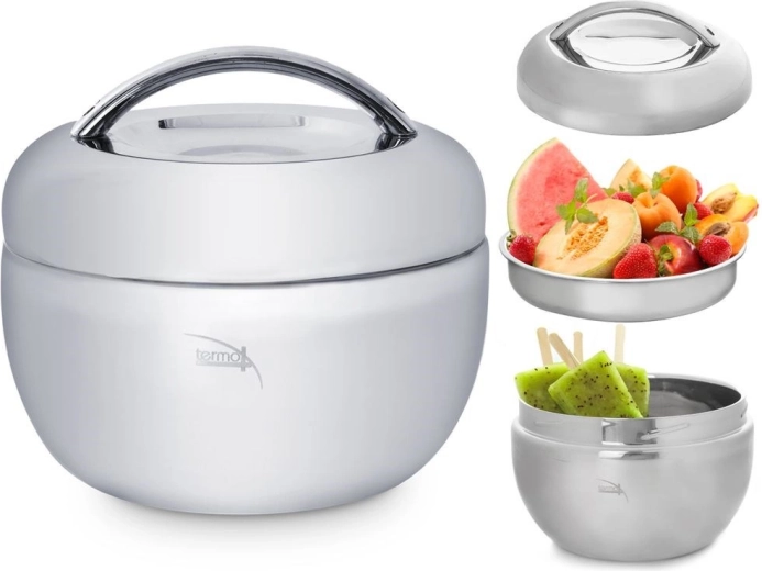 Užívejte si teplé obědy a studené dezerty kdykoli a kdekoli. Tento termo jídlonosič z vysoce kvalitní nerezové oceli má hladký povrch pro snadné čištění a praktickou vnitřní misku pro servírování příloh či svačin. Víko s integrovaným držadlem zajistí pohodlné přenášení.