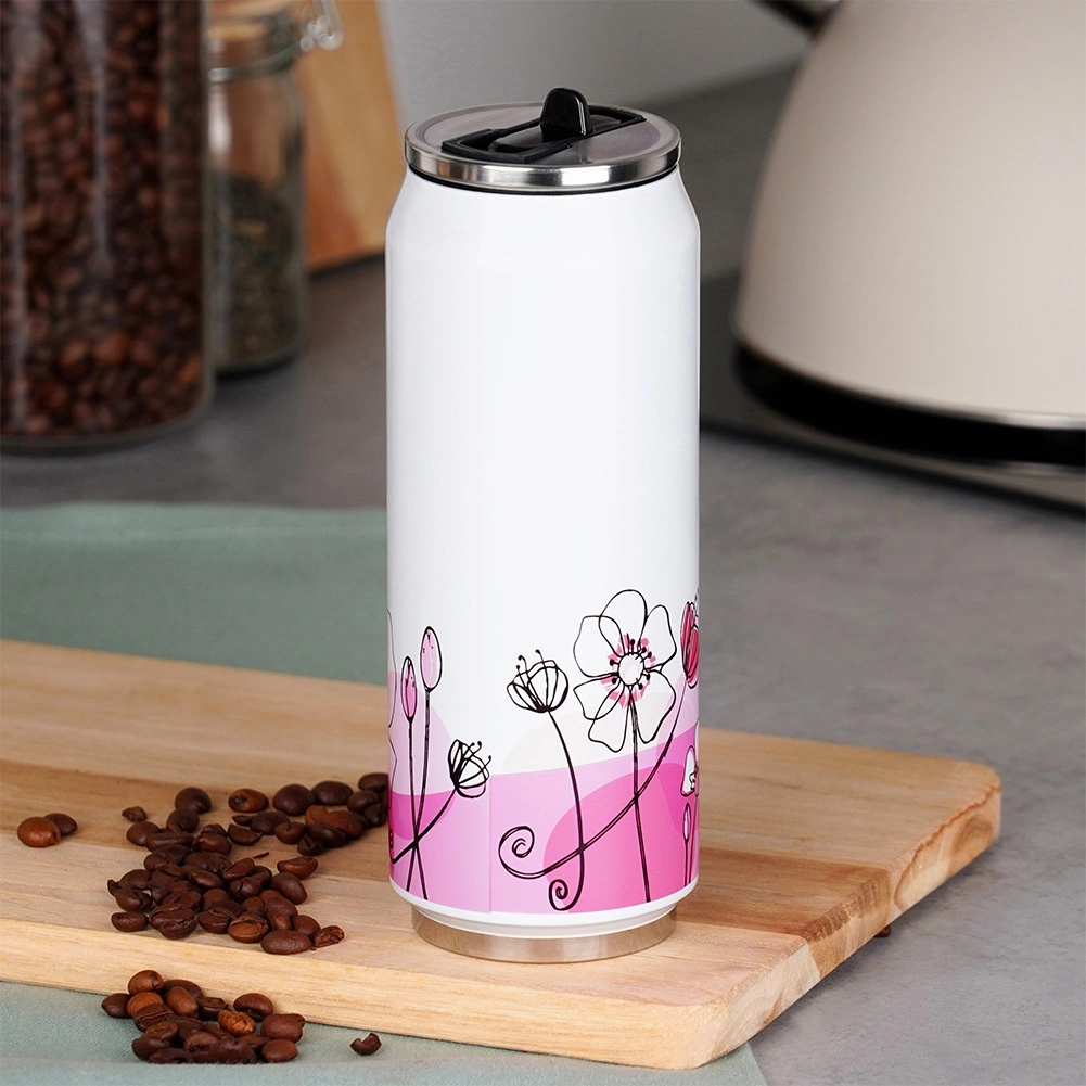Objevte moderní a praktický termohrnek ve tvaru plechovky, který kombinuje elegantní bílý design s růžovým květinovým motivem a špičkovou funkčnost. Dvojitá stěna s vakuovou izolací udrží ideální teplotu nápoje po dlouhé hodiny, zatímco nerezová ocel zajišťuje dlouhou životnost a odolnost vůči každodennímu používání.