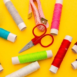 - Nitě v různých barvách, jehly, malé nůžky, krejčovský metr, knoflíky, náprstek, navlékač nitě, zavírací špendlíky, jehelníček