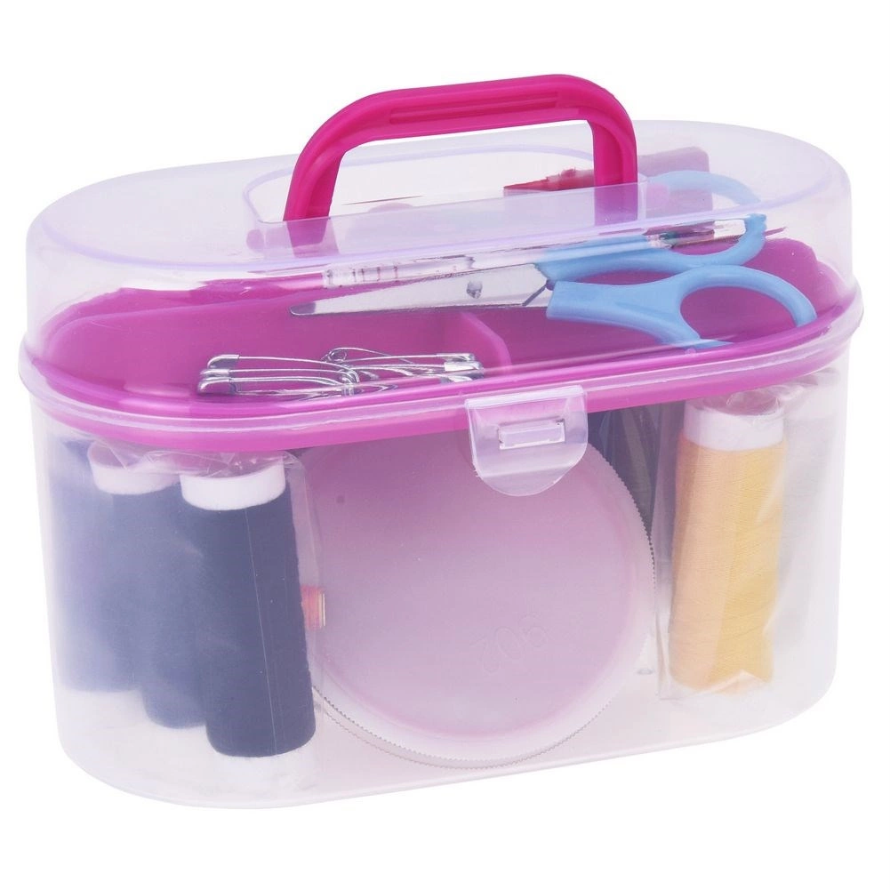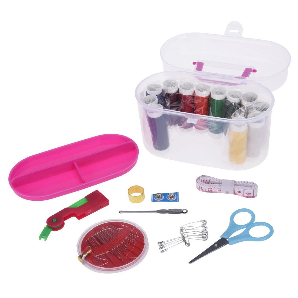 Praktická šicí sada s 50 díly v přenosném organizéru. Obsahuje barevné nitě, jehly, malé nůžky, krejčovský metr, knoflíky, náprstek, navlékač a zavírací špendlíky. Lehký, průhledný box s klipem je ideální na cesty i pro domácí opravy. Odolné a pružné nitě usnadní rychlé zašívání a úpravy oblečení.
