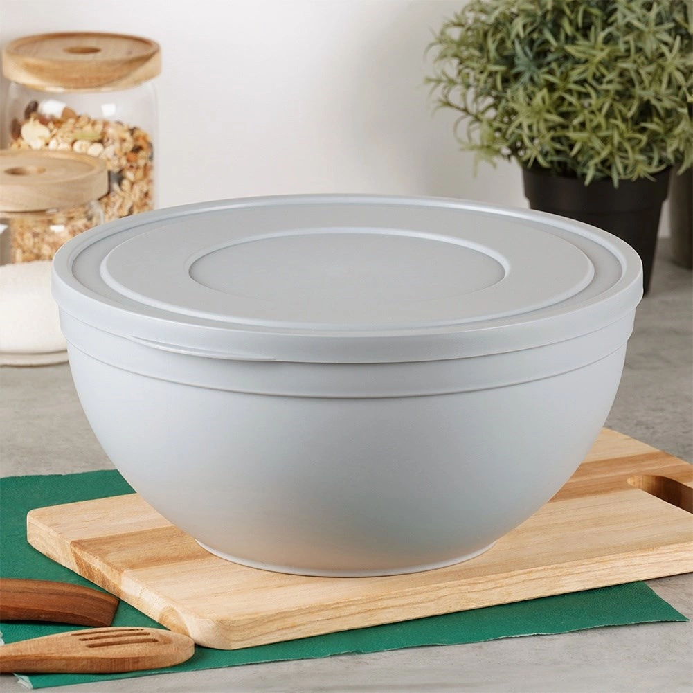 Velkoobjemová mísa s pevným, těsnícím víkem je skvělým pomocníkem pro pečení i každodenní vaření. Díky objemu 6 litrů pohodlně připravíte těsto na koláče, chléb i pizzu. Hladké stěny usnadňují míchání a čištění, víko zase zajišťuje čerstvost a bezpečné skladování v lednici.