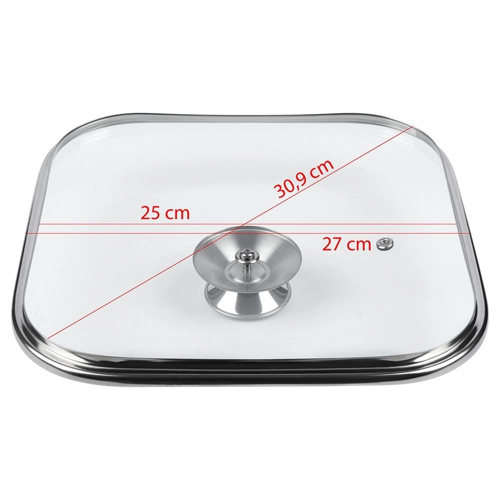 Praktická poklice z čirého, žáruvzdorného skla s robustním nerezovým lemem a pohodlným nerezovým úchopem je ideálním doplňkem pro čtvercové hrnce, pánve a rendlíky. Díky průhlednému provedení máte vaření vždy pod kontrolou, aniž byste uvolňovali páru a teplo.