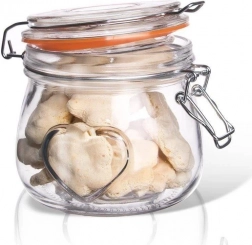 Stylová a praktická skleněná dóza s klipem je skvělou volbou pro každodenní skladování potravin i přípravu domácích dobrot. Díky patentnímu uzávěru s gumovým těsněním je dokonale těsná a ochrání obsah před vzduchem a vlhkostí. Silné sklo s reliéfem srdce působí elegantně, takže je vhodná i jako dárkové balení pro domácí marmelády či med.