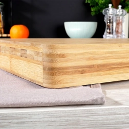 Toto masivní prkénko z přírodního bambusu je skvělým pomocníkem pro každodenní přípravu jídel i atraktivní servírování sýrů, uzenin, ovoce či snacků. Bambusové dřevo je přirozeně odolné vůči vlhkosti a deformacím, zároveň je šetrné k ostří nožů a snadno se udržuje v čistotě.