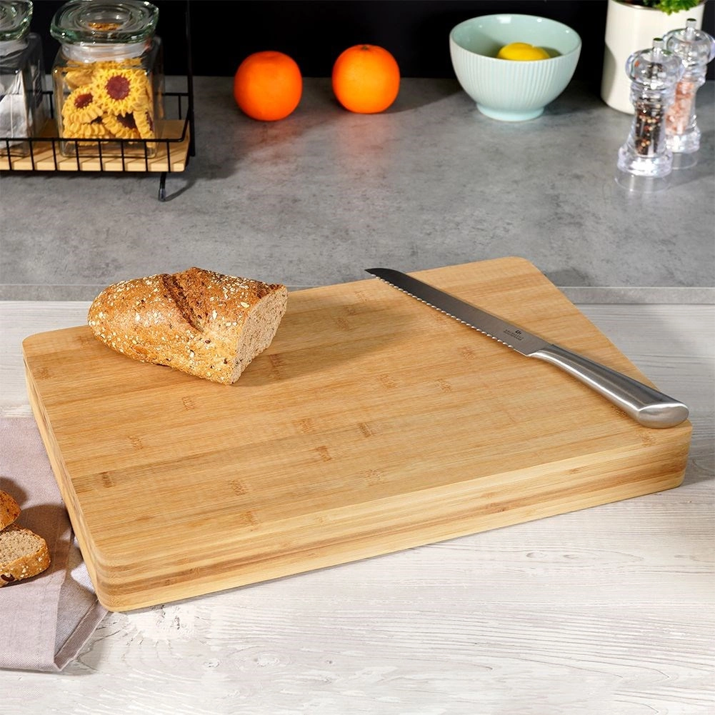 Robustní bambusové prkénko na krájení a servírování s rozměry 46 × 30 cm nabízí velkou pracovní plochu, vysokou odolnost a šetrnost k nožům. Díky přírodnímu bambusu je hygienické, rychle schne a nepohlcuje pachy – ideální do každé kuchyně i na stylové servírování.