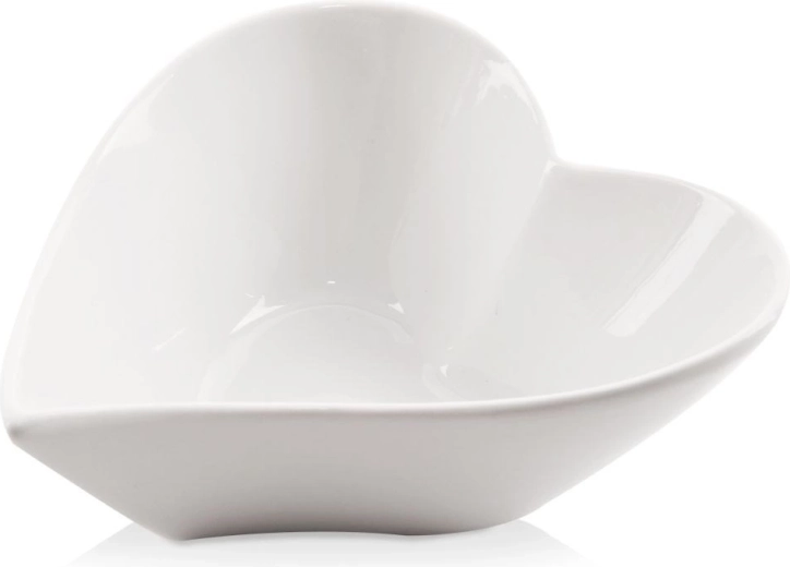 Tato stylová miska ve tvaru srdce vnese na váš stůl šmrnc i eleganci. Perfektní velikost 13 × 11 cm a objem 180 ml z ní dělají praktického pomocníka pro každodenní servírování oříšků, sušeného ovoce, oliv, dezertů či drobných pochutin. Neutrální bílá barva z porcelánu krásně zvýrazní servírované dobroty a snadno se kombinuje s ostatním nádobím.
