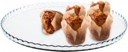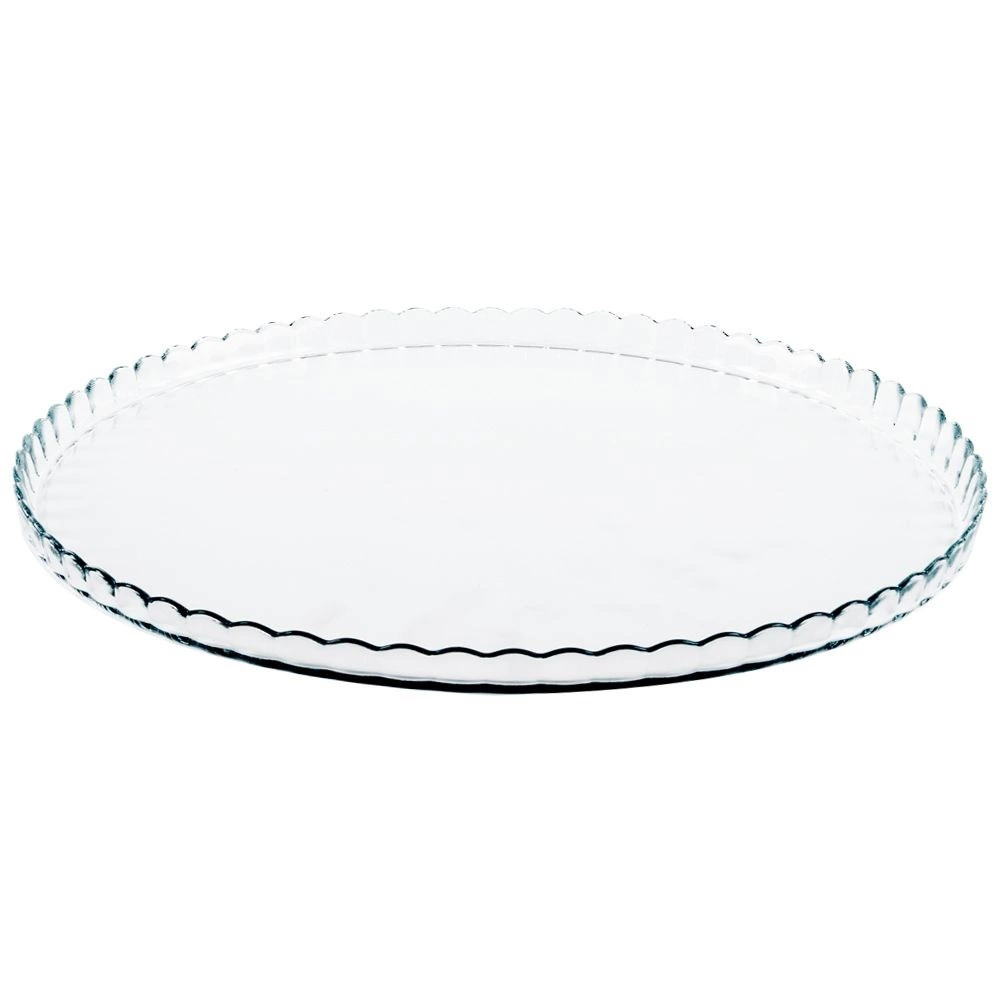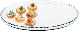 Elegantní skleněná patera o průměru 32 cm s dekorativním vlnkovaným okrajem krásně zvýrazní vaše dezerty, předkrmy i dorty. Je vyrobena z kvalitního čirého skla, je odolná, univerzální a snadno se udržuje – vhodná do myčky i do lednice. Ideální pro servírování dortů, koláčů a zákusků s efektní prezentací.
