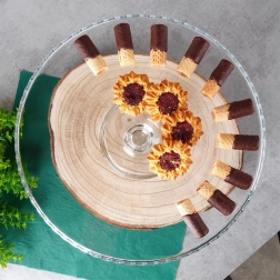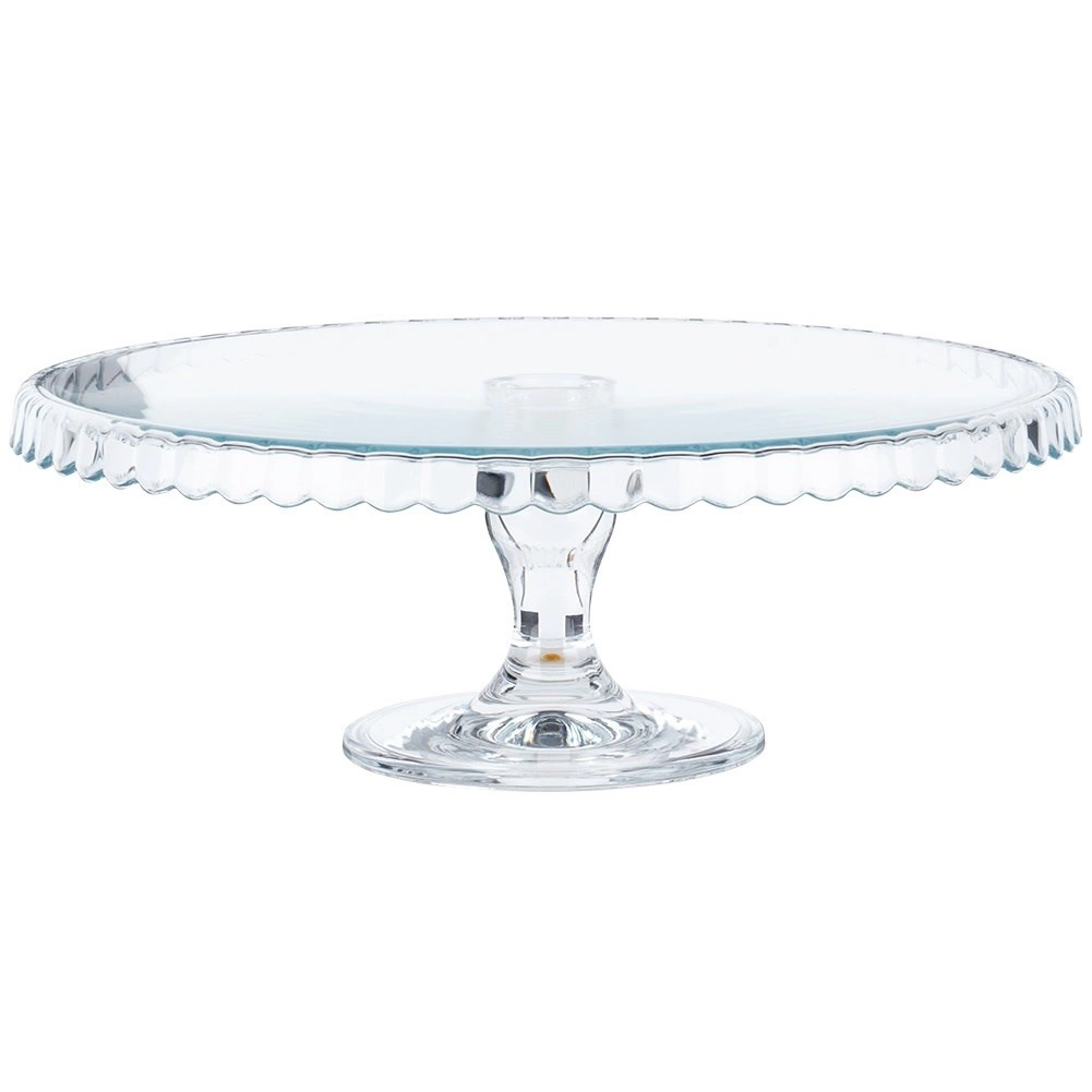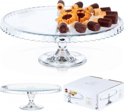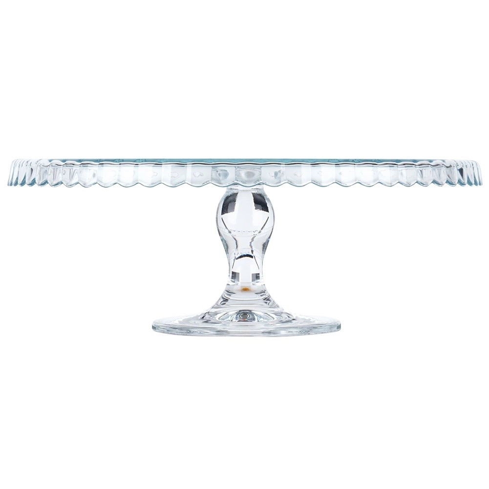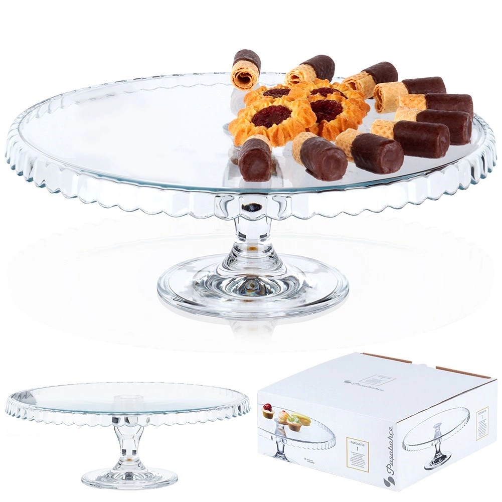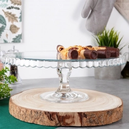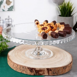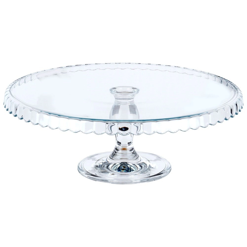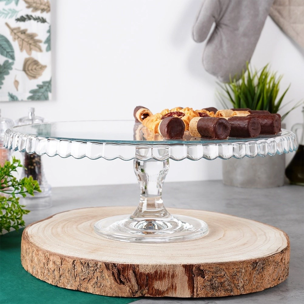 Vystavte dorty, koláče, cupcaky či kanapky ve velkém stylu. Transparentní sklo podnosu nechá vyniknout barvám a strukturám vašich dezertů, zatímco zvýšená piedestalová noha zajistí pohodlné krájení i servírování. Vlnkovaný okraj dodává dekorativní nádech každému stolu.