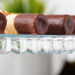 Čiré sklo a vlnkovaný okraj podtrhnou vzhled dortů a cukroví, které budou na stole doslova zářit.