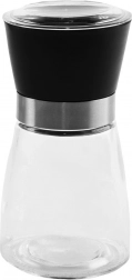 Univerzální skleněný mlýnek na sůl, pepř i další koření s výškou 13 cm a průměrem 6,5 cm. Nabízí ruční mletí, keramický mlecí mechanismus pro tvrdé zrna, regulaci hrubosti pomocí otočného knoflíku a víčko proti sypání zbytků. Elegantní, odolný a snadno se čistí – ideální do kuchyně i gastronomických provozů.