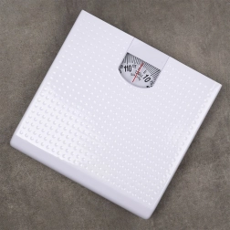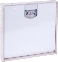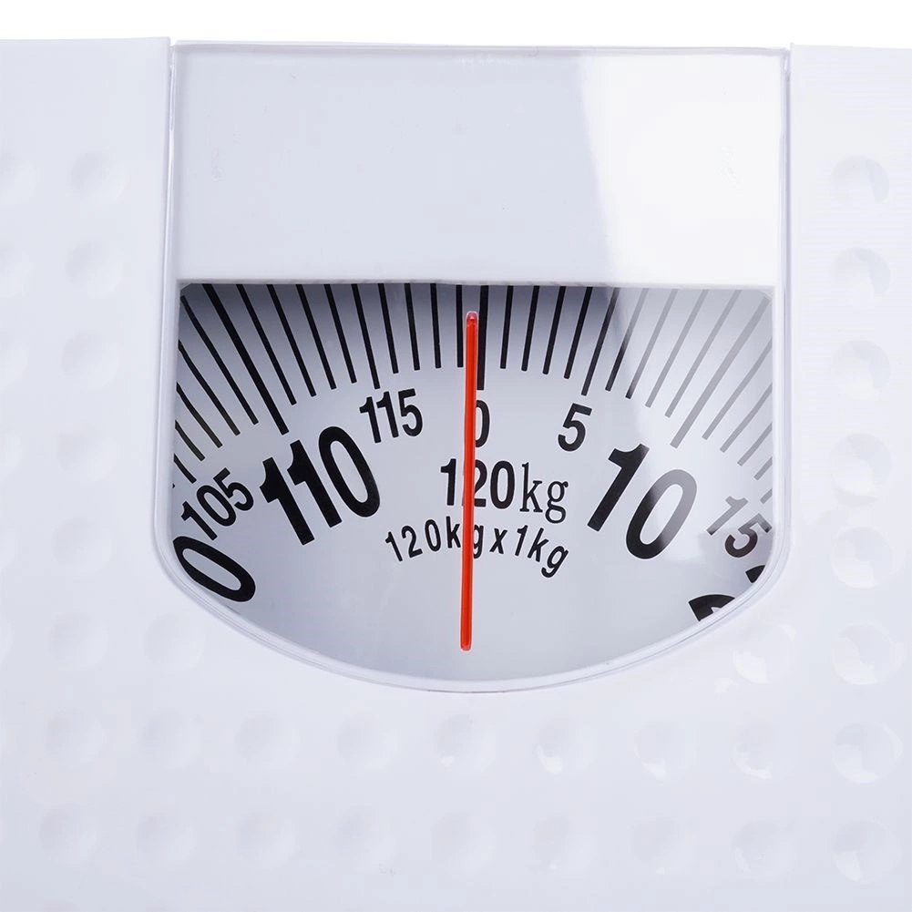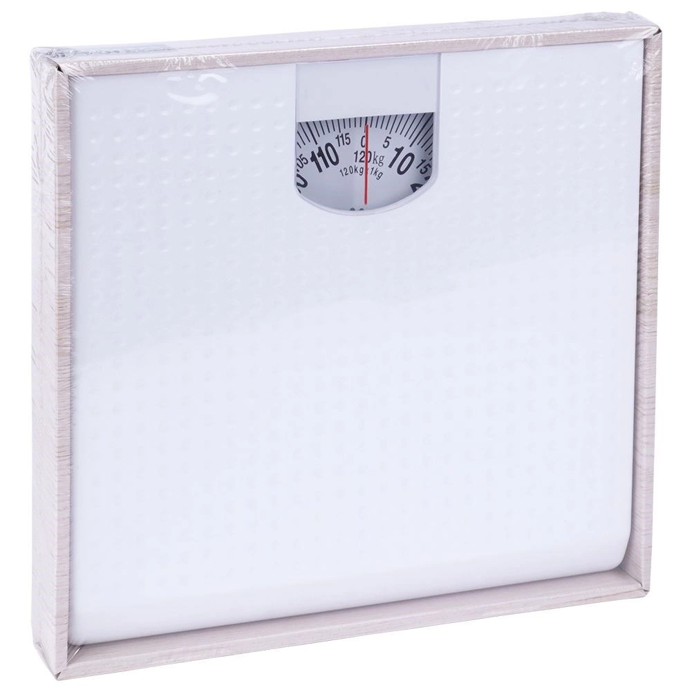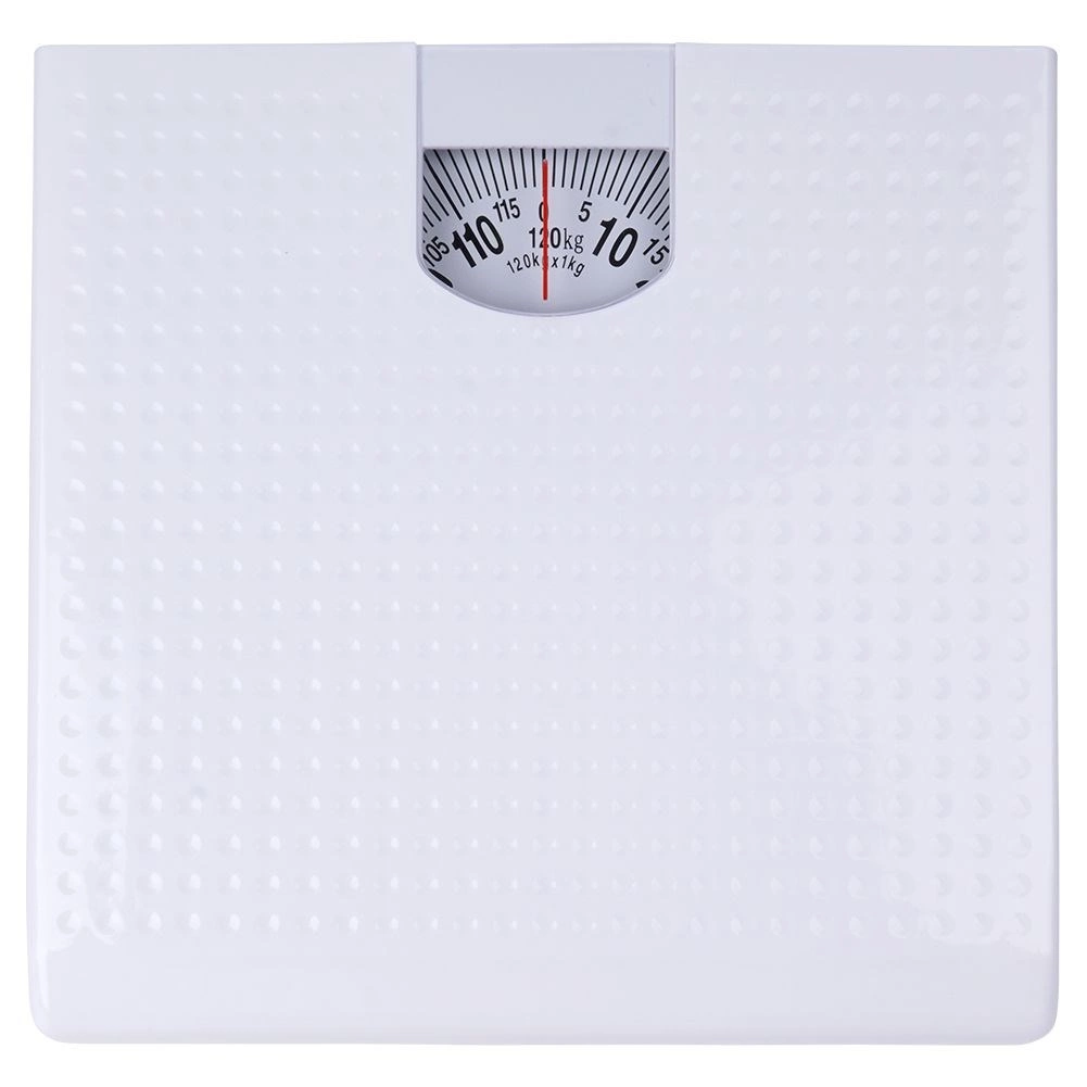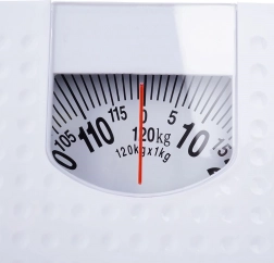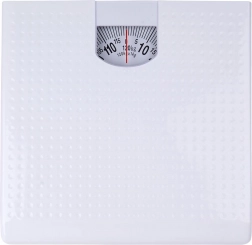 Jednoduchá a spolehlivá mechanická osobní váha v bílé barvě pro každodenní kontrolu hmotnosti. Nabízí maximální nosnost 120 kg, čitelý analogový ciferník s dělením po 1 kg a protiskluzový povrch pro bezpečné stání. Funguje bez baterií – mechanický provoz šetří starosti i náklady.