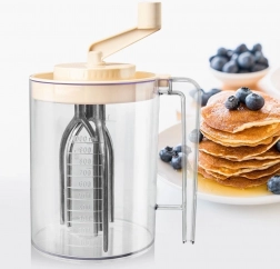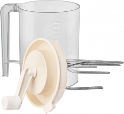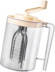 Praktický ruční mixér s korbkou a integrovanou odměrkou o objemu 1,5 l pro snadné šlehání, míchání a přípravu těsta. Díky průhledné nádobě s přesnou stupnicí v ml a litrech, pevné rukojeti a víku proti odstřiku zvládnete rychle a čistě připravit šlehačku, sněh z bílků, palačinkové těsto i omáčky. Mechanický pohon bez elektřiny, odolné materiály a snadná údržba dělají z mixéru spolehlivého pomocníka do každé kuchyně.