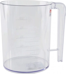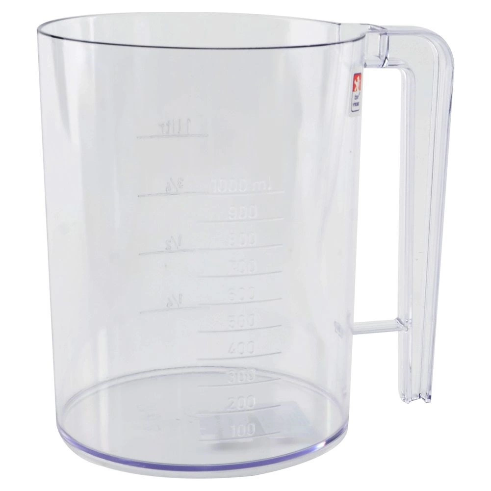 Průhledný džbán s jasnou stupnicí 100–1000 ml a označením 1/4–1 l vám usnadní kontrolu nad množstvím surovin i konzistencí těsta.