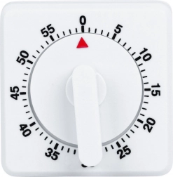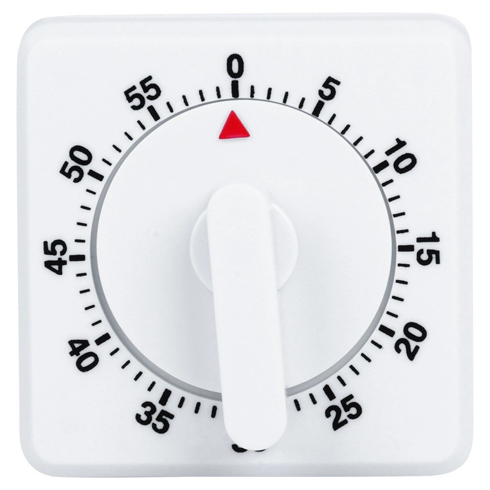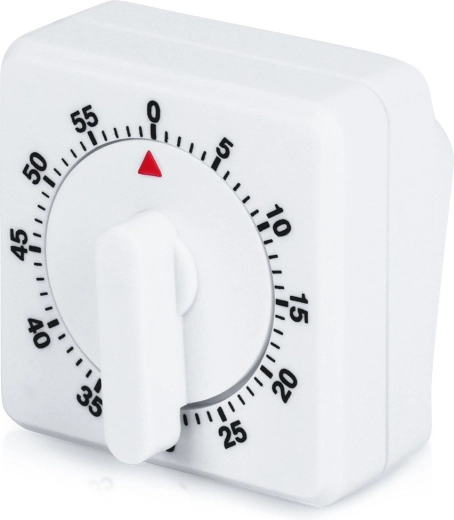 Minutka nevyžaduje žádné baterie – stačí ji nejprve pootočit na maximum a následně vrátit na požadovaný čas. Čtvercové tělo se stabilní základnou zajišťuje spolehlivé postavení na lince, k dispozici je také otvor pro zavěšení. Kvalitní bílé plastové provedení je lehké a odolné, snadno se čistí a dobře ladí s každou kuchyní.