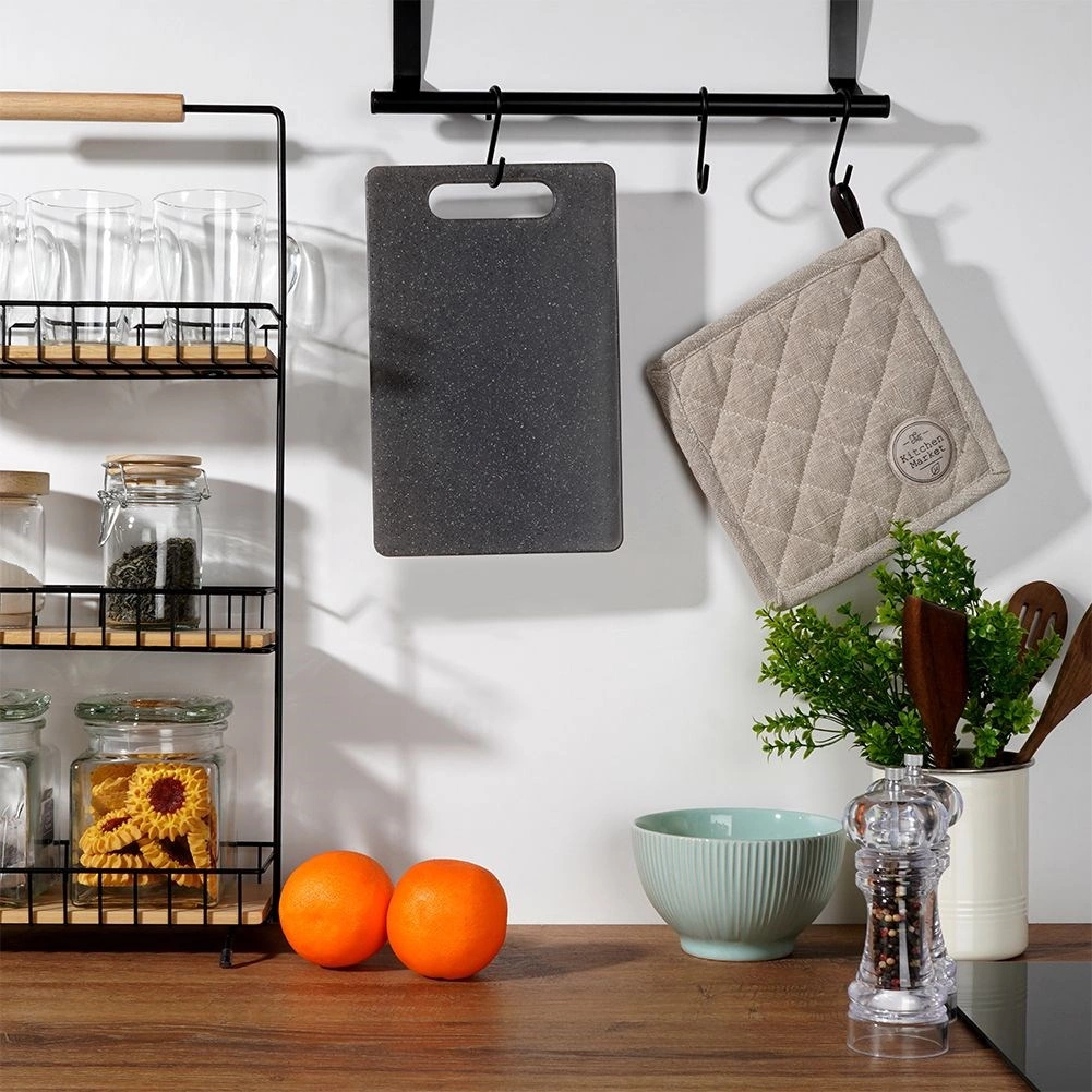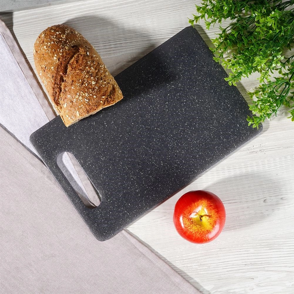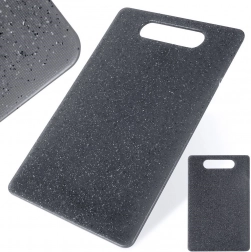 Šedé krájecí prkénko z odolného plastu s povrchem imitujícím granit je skvělou volbou pro každou kuchyni. Kompaktní rozměry 24 × 15 cm šetří místo, přesto nabízí komfortní pracovní plochu pro krájení pečiva, ovoce, zeleniny i masa. Materiál je šetrný k čepelím a vhodný pro všechny nože, včetně keramických.