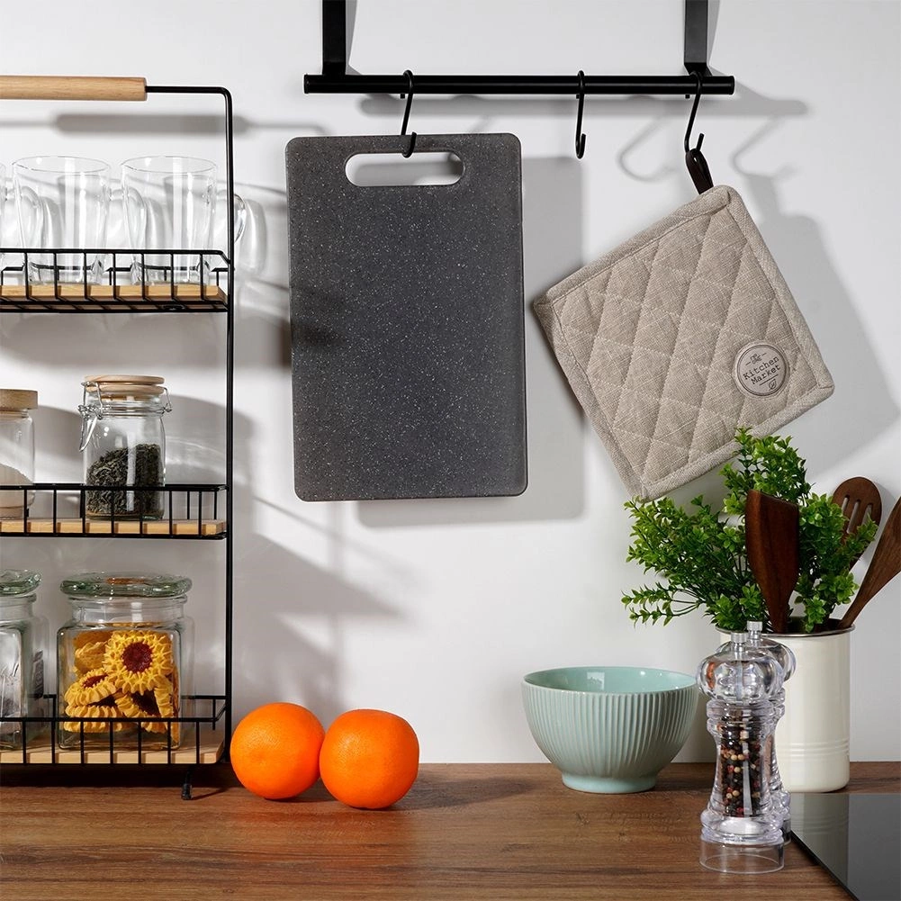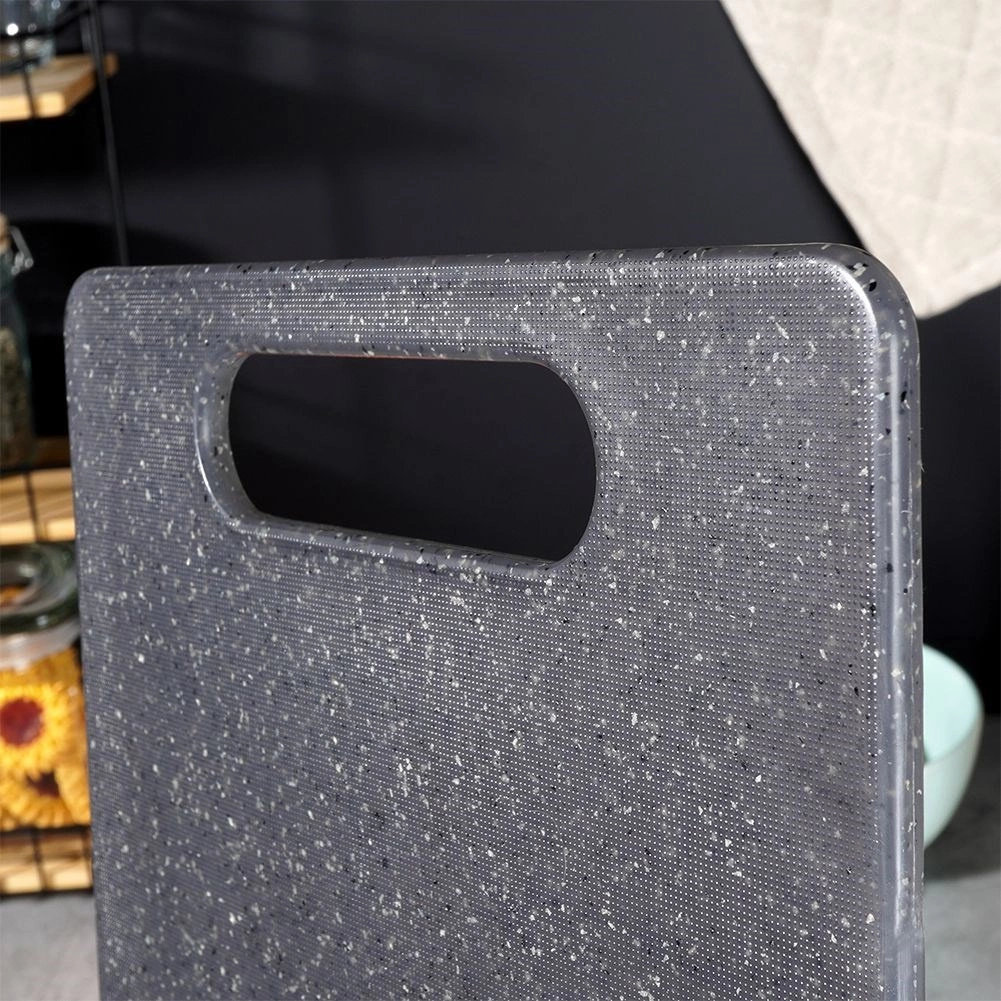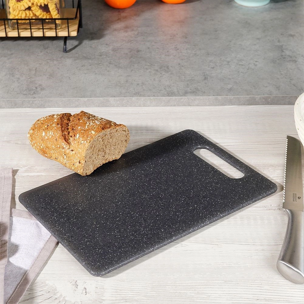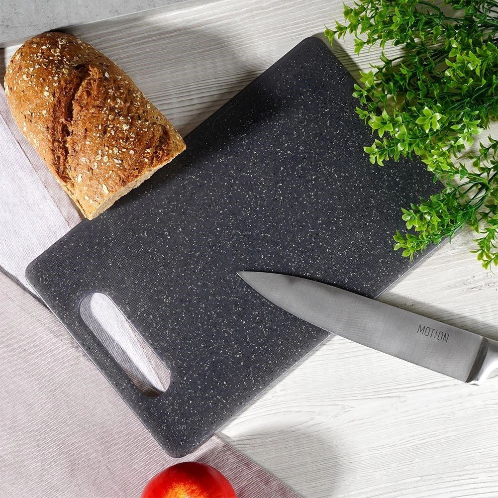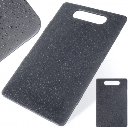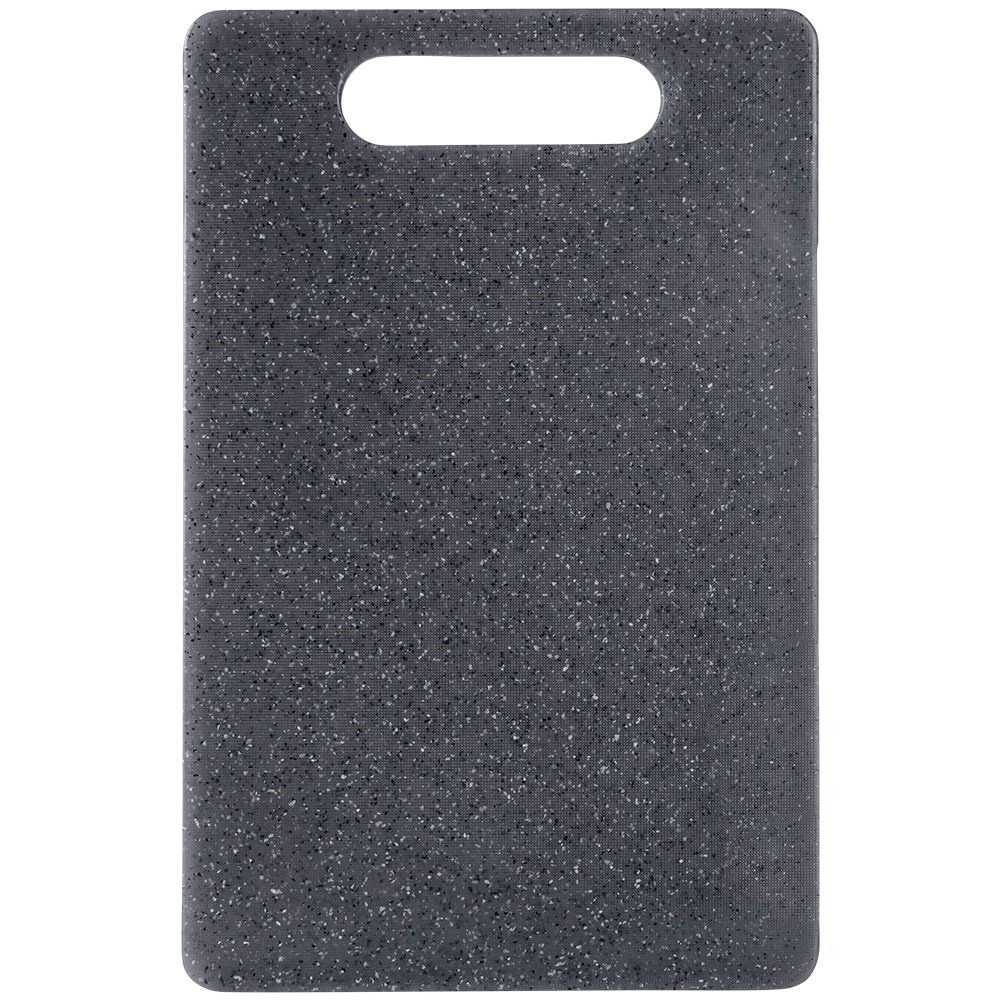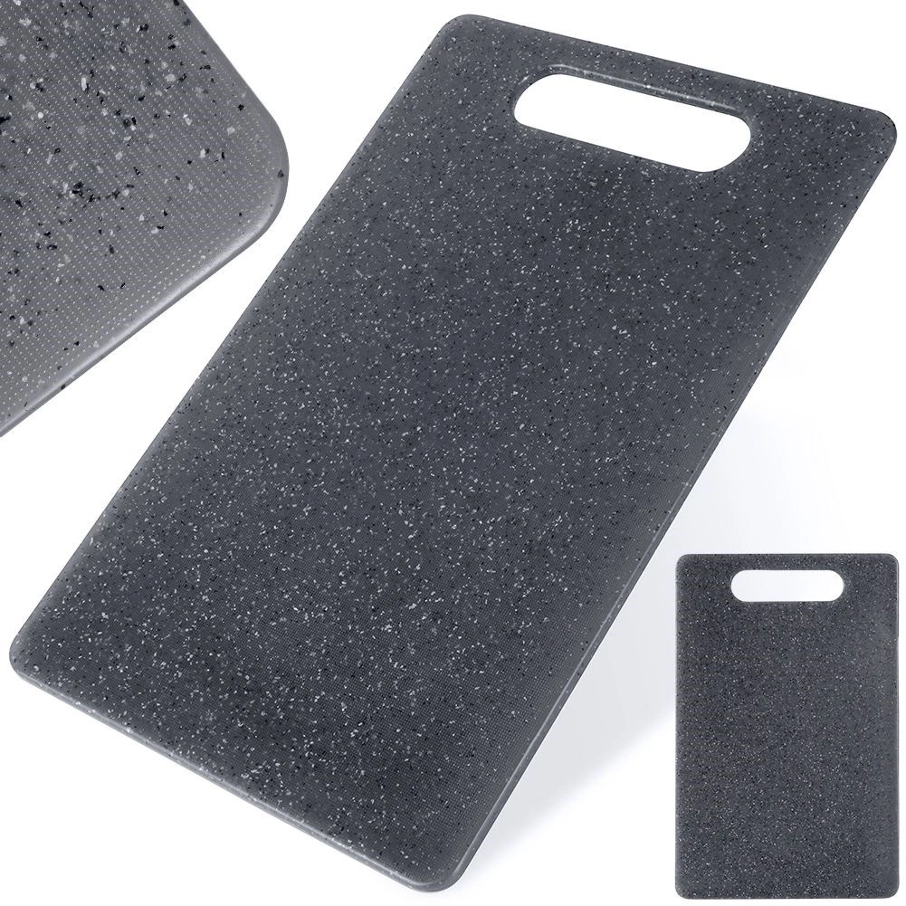 Univerzální plastové prkénko na krájení potravin s rozměry 31 × 20 cm je spolehlivým pomocníkem do každé kuchyně. Odolný materiál v šedé barvě s efektem „granitu“ je šetrný k nožům, vhodný i pro keramické ostří, a současně odolává běžnému opotřebení.