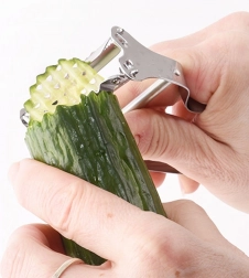 - dvojité: hladký pro loupání + vlnkovaný/julienne pro dekorativní řezy