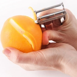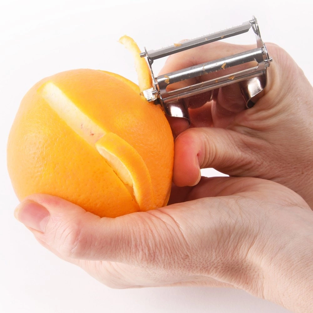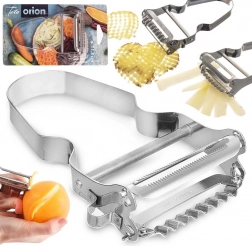 Praktická nerezová škrabka se dvěma břity pro rychlé loupání, krájení na plátky i dekorativní řezání. Nabízí dlouhou životnost, více funkcí v jednom nástroji a pohodlné používání pro praváky i leváky. Vhodná do myčky nádobí.