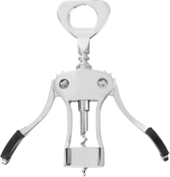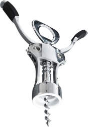 Praktická kovová vývrtka s křidélky pro rychlé a snadné otevírání lahví vína bez námahy. Odolné kovové provedení v elegantní stříbrné barvě, pohodlné ovládání a integrovaný otvírák korunkových uzávěrů dělají z tohoto nástroje ideální volbu do každé domácnosti i jako stylový dárek pro milovníky vína.