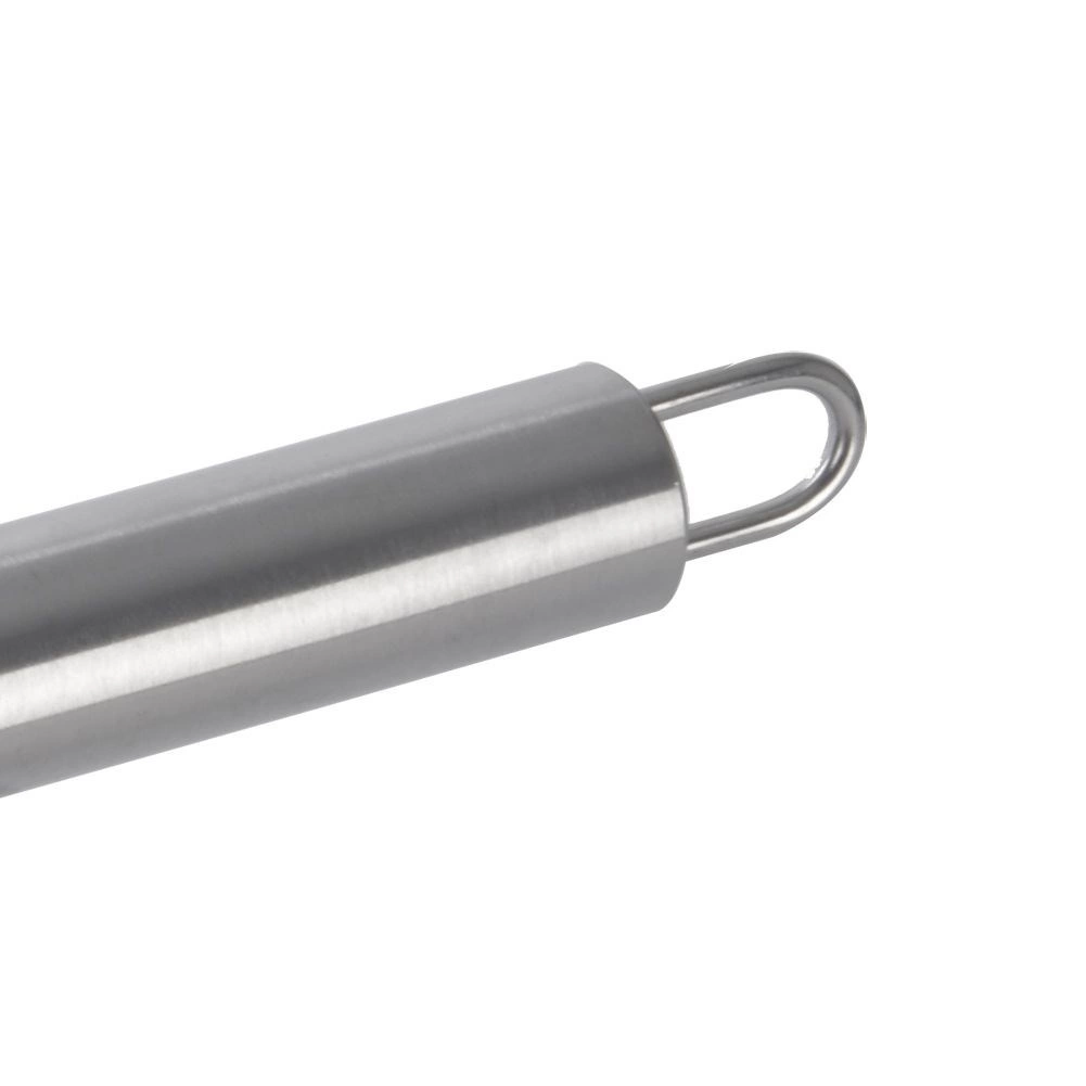Vyrobena z kvalitní nerezové oceli, je bezpečná pro potraviny, odolná vůči korozi a vhodná do myčky. Praktické očko umožní zavěšení na lištu a mít metlu vždy po ruce.