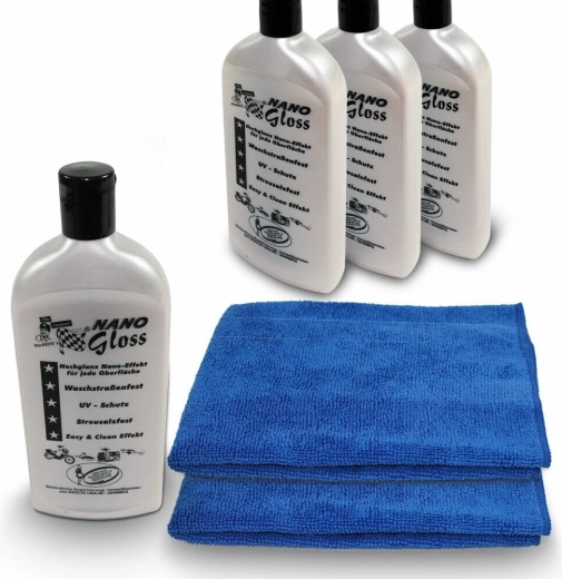 Kompletní sada pro péči o lak vašeho vozu: čtyři lahve politury MacBRITE Nano Gloss a dvě kvalitní mikrovláknové utěrky. Nano částice vyplňují nerovnosti laku a vytvářejí hladký, vysoce lesklý povrch, který je lépe chráněn před prachem a nečistotami. Lak je zároveň méně náchylný ke korozi a odolnější při běžném používání.