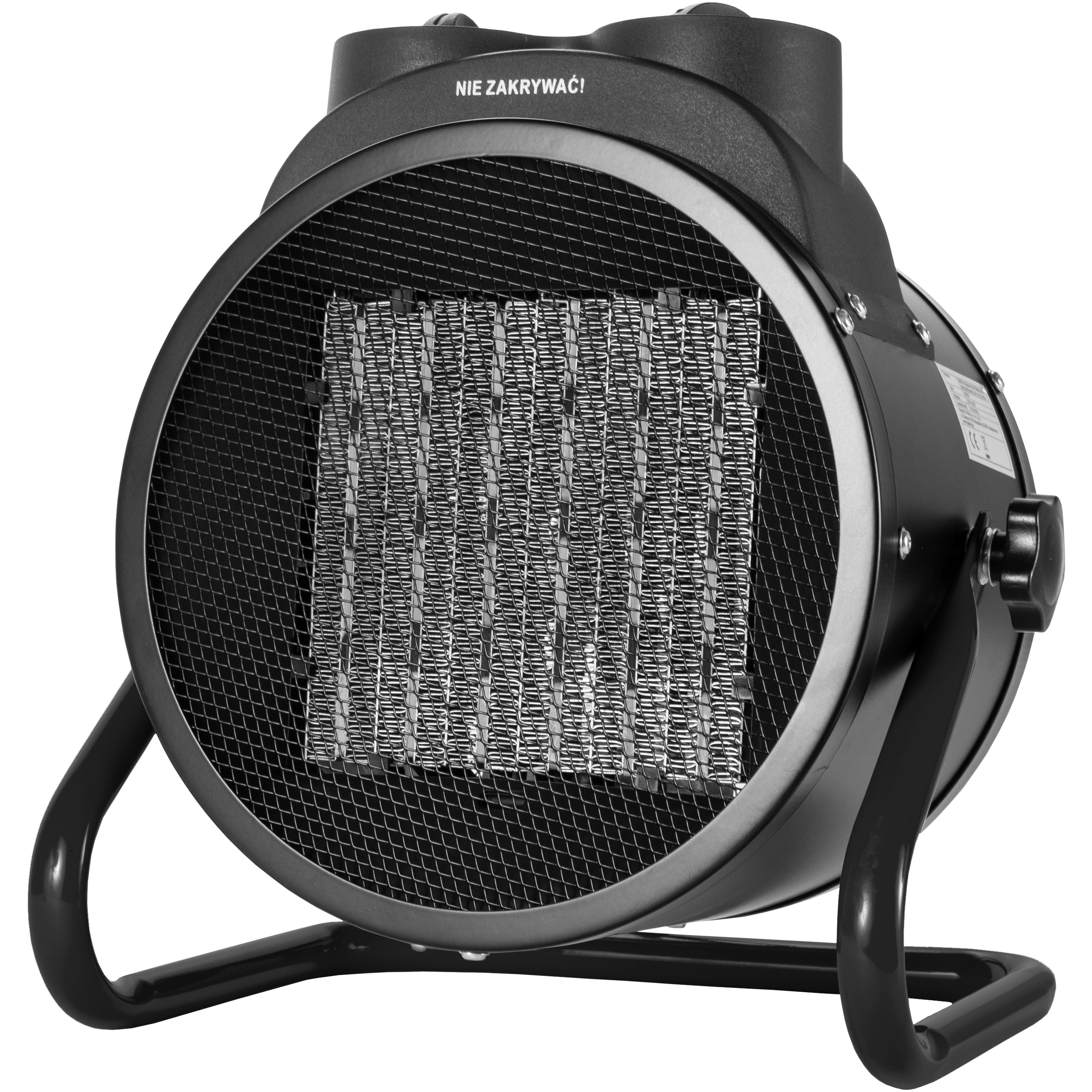 K dispozici jsou tři režimy: samotný ventilátor pro cirkulaci vzduchu, lehký ohřev pro mírné přitopení a silný ohřev pro rychlé dosažení požadované teploty. Nastavitelný úhel náklonu nasměruje proud teplého vzduchu přesně tam, kde je potřeba – ideální do dílny, garáže či na stavbu.