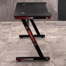 Užijte si stabilitu a pohodlí díky robustní ocelové konstrukci a prostorné desce z MDF. Správa kabelů je snadná díky dvěma průchodkám, které zamezí nepořádku na stole, a sluchátka budete mít vždy po ruce na integrovaném držáku. Černé provedení s karbonovými akcenty podtrhuje herní charakter stolu.