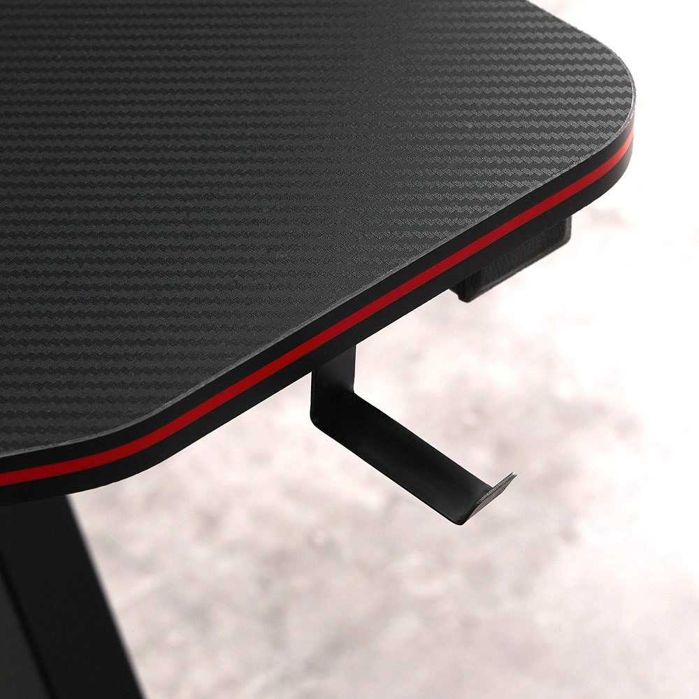 Stylový černý herní stůl s pevným kovovým rámem a širokou pracovní plochou přináší pohodlí při hraní i práci. Nabízí ergonomickou konstrukci, dva průchodky na kabely pro čisté vedení vodičů a praktický držák na sluchátka. Stabilní zpracování a moderní design s karbonovými prvky skvěle zapadne do každého gamingového setu.