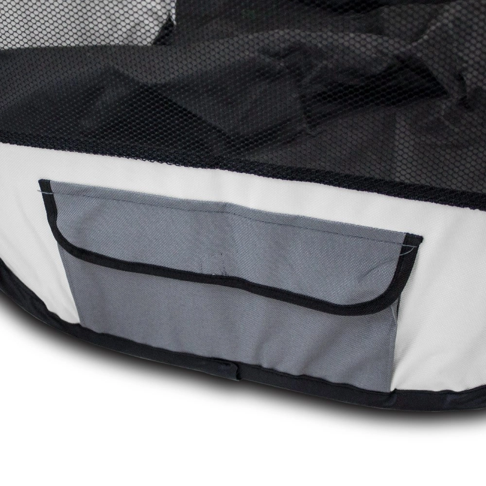 Lehká a skladná ohrádka pro psy, kočky a malá zvířata nabízí bezpečný prostor doma i venku. Díky systému rychlého rozložení pop-up, síťovaným stěnám pro ventilaci a zipovacímu hornímu víku je ideální na trénink, odpočinek i cesty. Součástí je transportní taška a kolíky pro ukotvení venku.