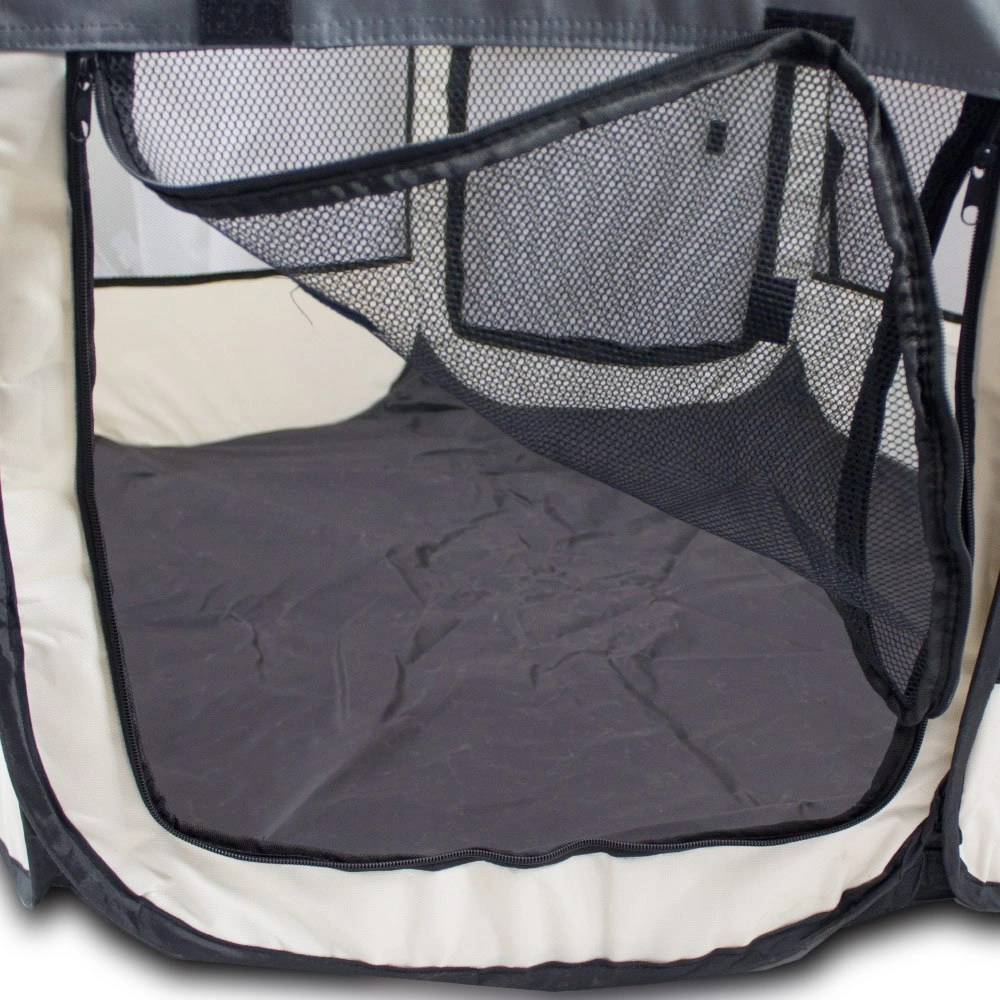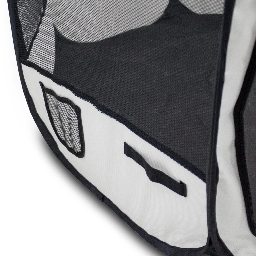 Tato prostorná ohrádka poskytne vašemu mazlíčkovi bezpečné a přehledné místo na hraní i relax. Síťované boky zajišťují skvělou cirkulaci vzduchu a viditelnost, zatímco dvoje vchody usnadňují přístup. Zipovací střecha umožní rychlé otevření nebo úplné uzavření podle potřeby.