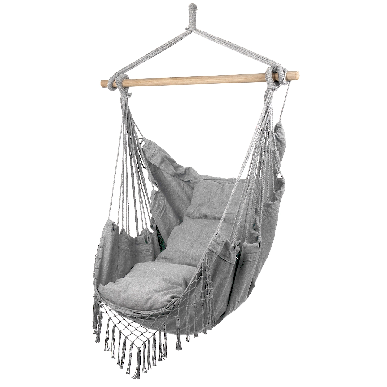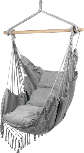 Toto brazilské závěsné křeslo v barvě L.GRAY je ideální pro odpočinek na terase, balkoně i v interiéru. Kombinace 65 % bavlny a 35 % polyesteru je příjemná na dotek, dobře dýchá a zároveň je odolná při každodenním používání. Dřevěná rozpěrná tyč zajišťuje komfortní posezení a stabilní tvar křesla.