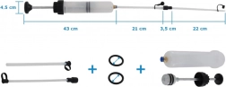 - Pumpa 200 ml, 2× PVC hadice, 2× náhradní těsnění, 2× gumová zátka, 1× silikonová spojka