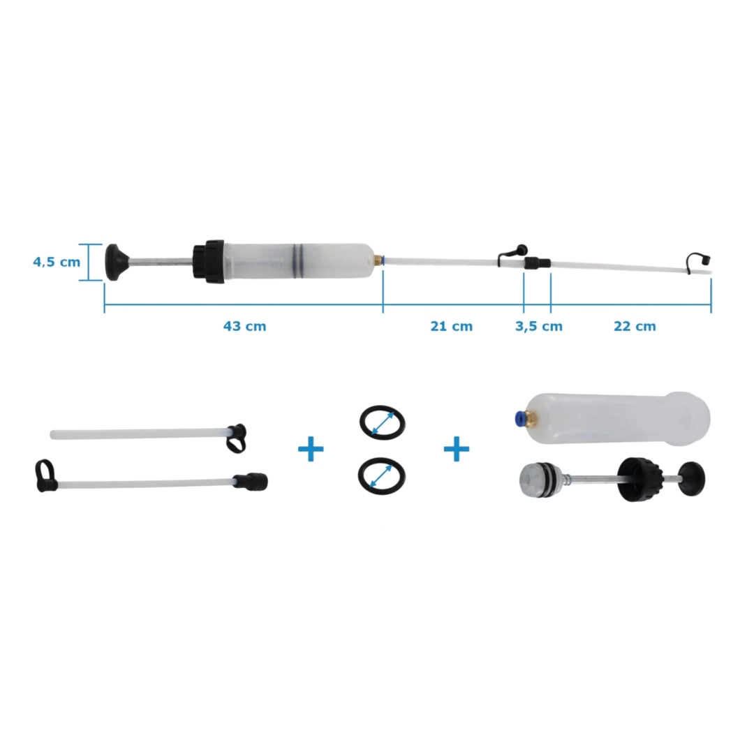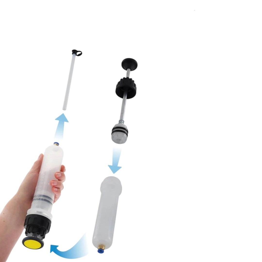 Hledáte spolehlivý nástroj pro čisté a kontrolované doplňování a odsávání kapalin? Tato ruční olejová pumpa o kapacitě 200 ml nabízí přesné dávkování díky integrované stupnici, vysokou těsnost díky dvojitým gumovým těsněním a univerzální použití s dvojicí průhledných PVC hadic 1/4" a 3/8".