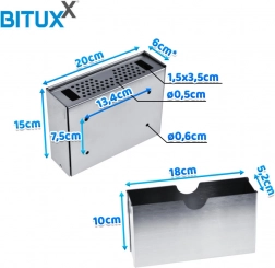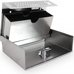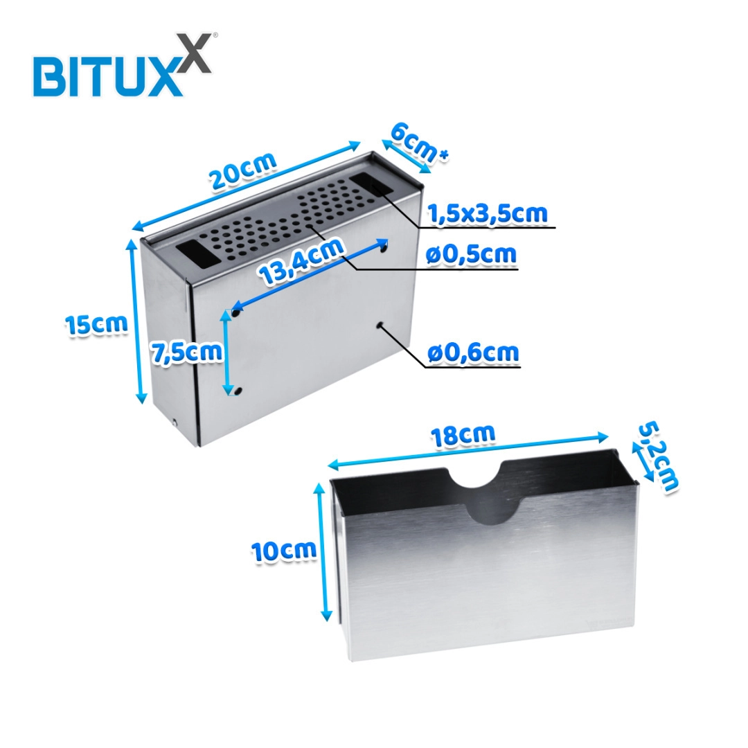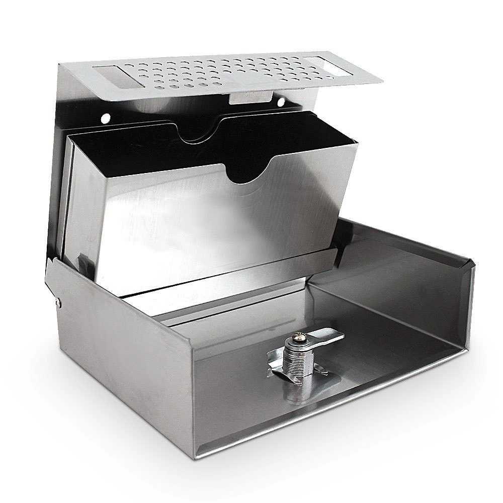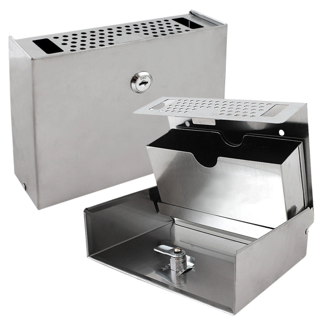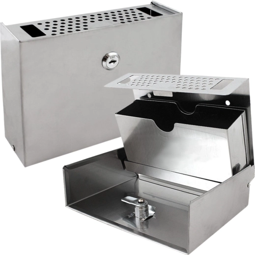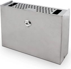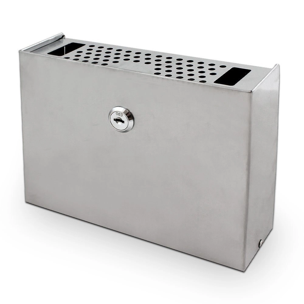 Tato kompaktní popelníčka z kvalitní nerezové oceli (INOX) je navržena pro nástěnnou montáž a každodenní provoz. Moderní matně kovový vzhled ladí s jakoukoli fasádou a větrací perforace podporují bezpečný provoz. Uzamykatelný čelní panel se dvěma klíči chrání obsah před nepovolanými osobami.