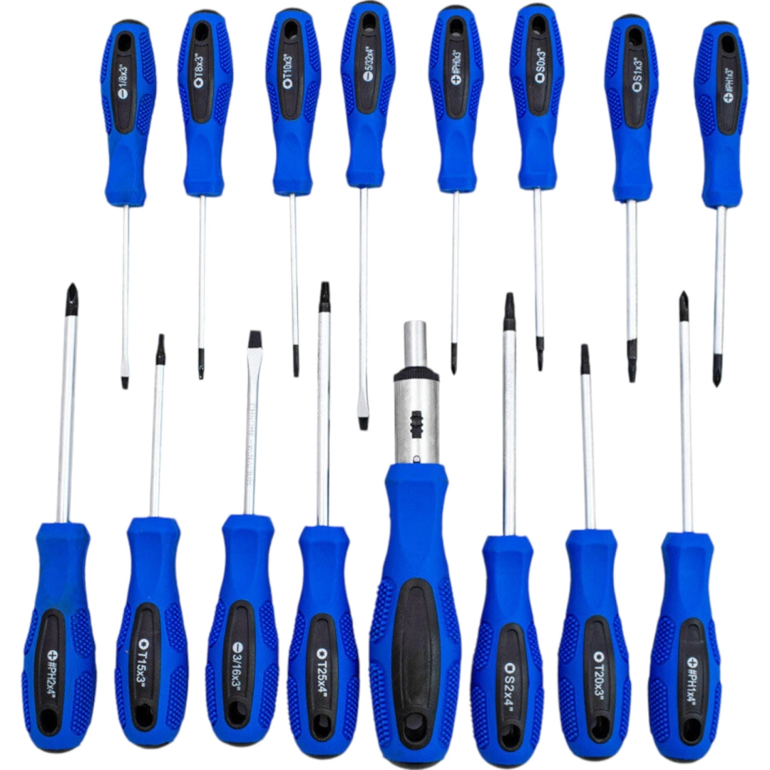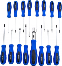 Tato univerzální sada 101 ks kombinuje vše, co potřebujete pro montáž, údržbu i opravy. Najdete v ní křížové, ploché, TORX, čtyřhranné i imbusové bity, přesné šroubováky a ráčnový držák pro rychlou práci. Ergonomické protiskluzové rukojeti zajišťují pohodlné a přesné šroubování, zatímco magnetické hroty spolehlivě drží šrouby.