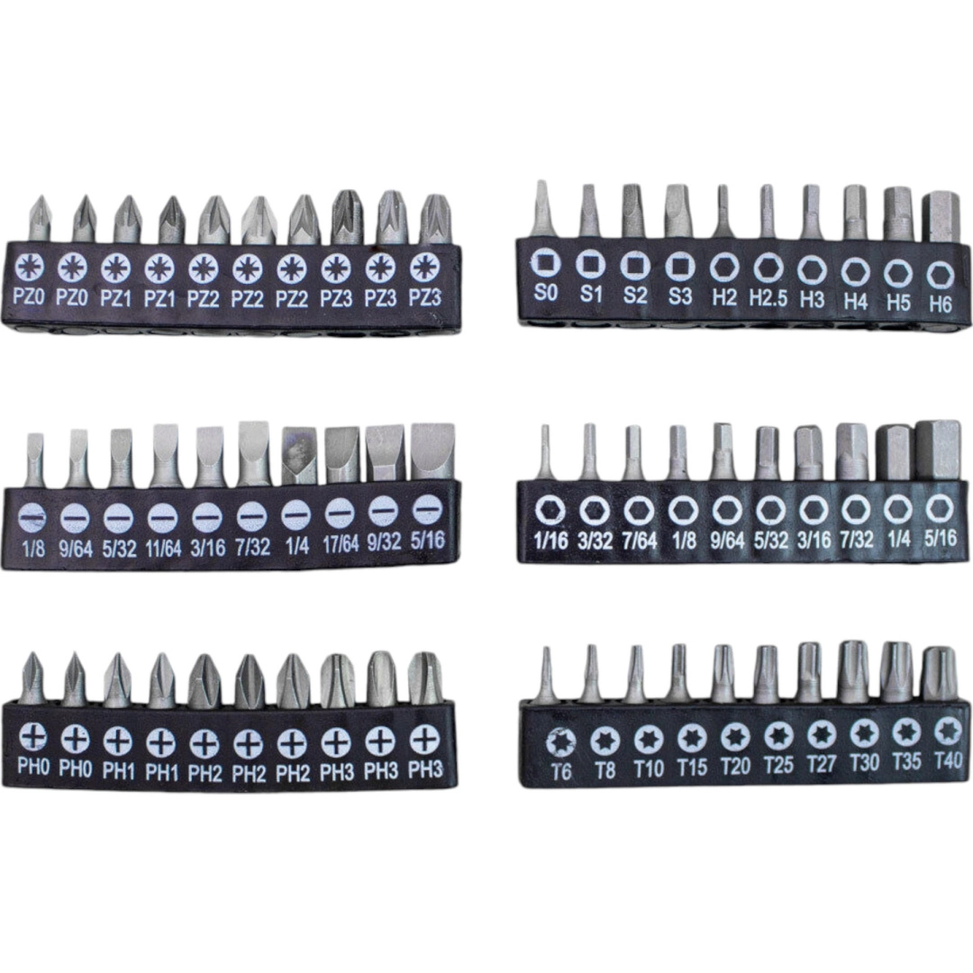 Od křížových a plochých přes TORX, PZ a hex po nástrčné bity a přesné šroubováky – sada pokryje většinu domácích i profesionálních úloh.