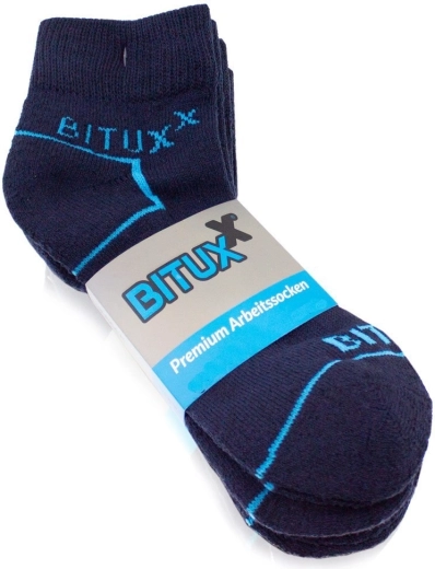 Pohodlné pracovní a volnočasové ponožky Bituxx v délce 3/4 nabízejí vysoký komfort nošení, zesílenou špičku a patu pro delší životnost a příjemný pružný lem pro jisté a pohodlné držení po celý den. V balení je 12 párů v tmavě modré barvě, dostupné ve velikostech 39–50.