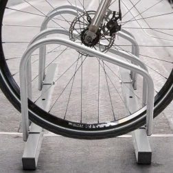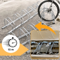 Galvanická povrchová úprava chrání stojan před deštěm, vlhkostí a korozí. Ideální do garáží, na dvory i veřejná prostranství.