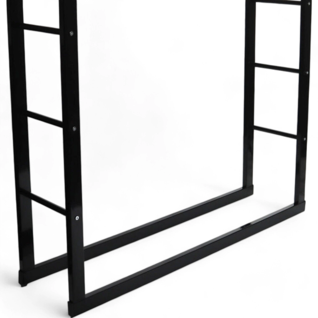 Elegantní stojan na dřevo o rozměrech 100 × 25 × 100 cm je ideální pro udržení pořádku u krbu i na terase. Jeho moderní loftový vzhled, odolná ocelová konstrukce a matná černá barva se hodí do každého interiéru. Díky kompaktní šířce a stabilní, plně svařované konstrukci nabízí bezpečné a přehledné skladování polen s dobrým prouděním vzduchu.