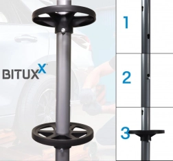 Mobilita bez námahy: otočná kolečka a nízká hmotnost umožní rychlé a bezpečné přesunutí stojanu v garáži či dílně. Univerzální kompatibilita do šířky 245 mm pokryje většinu běžných rozměrů osobních aut.