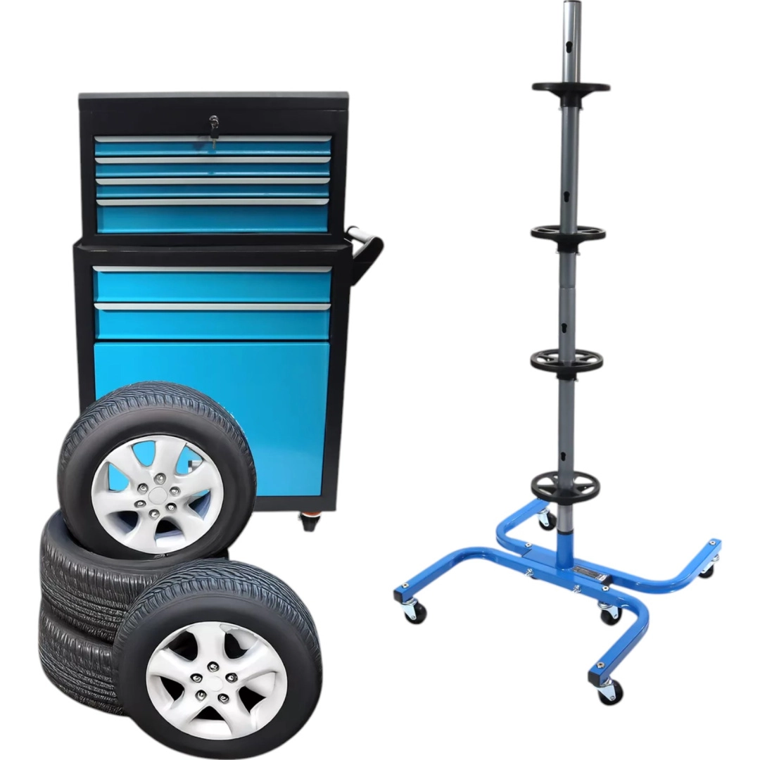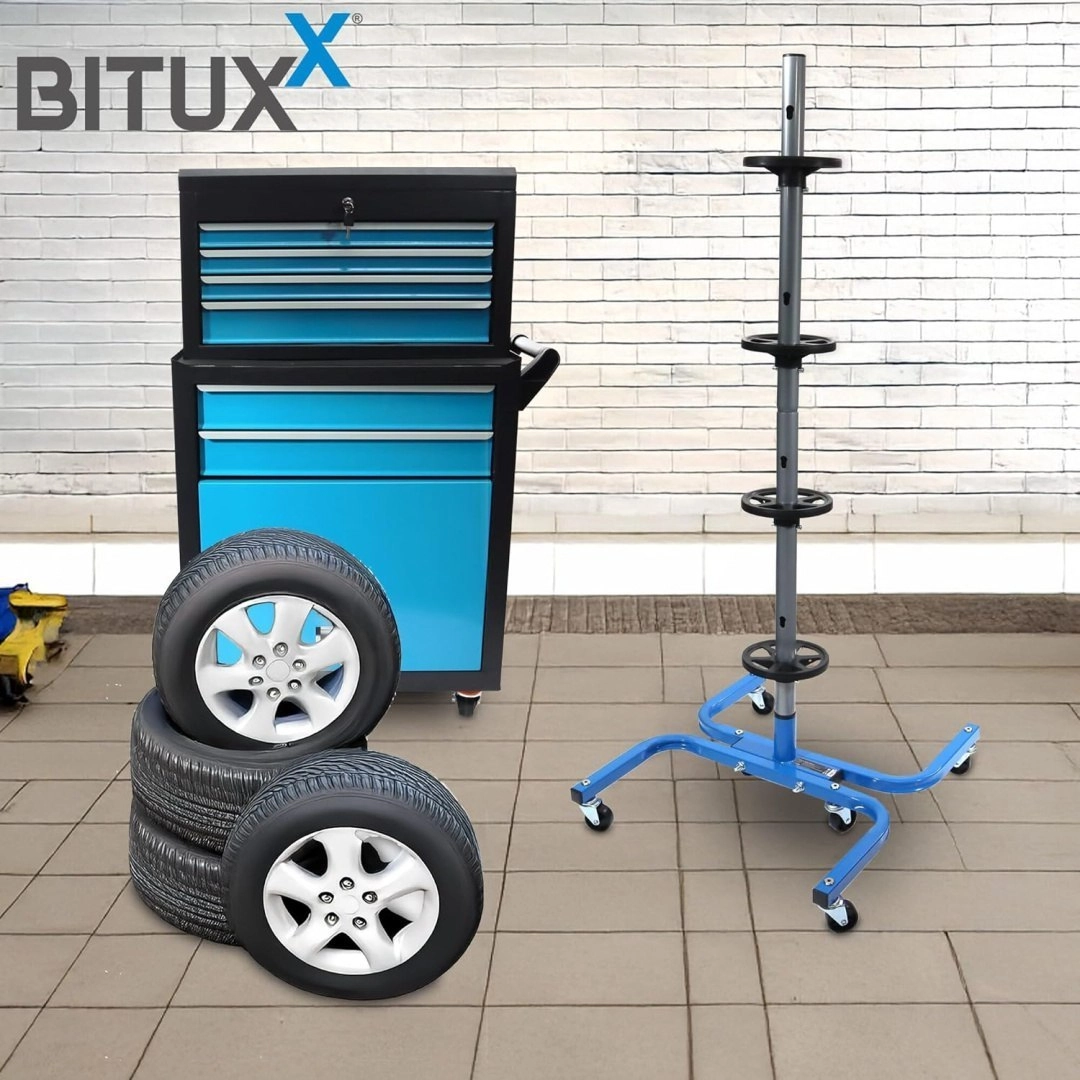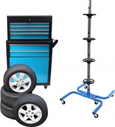 Praktický a stabilní stojan na čtyři kola vám zajistí bezpečné a přehledné uložení pneumatik doma i v dílně. Ocelová konstrukce s nosností 150 kg udrží i těžké sady kol, oddělovací kruhy brání deformaci pneumatik a kolečka umožňují snadné přemístění po garáži. Vhodné pro šířku pneumatik až 245 mm.