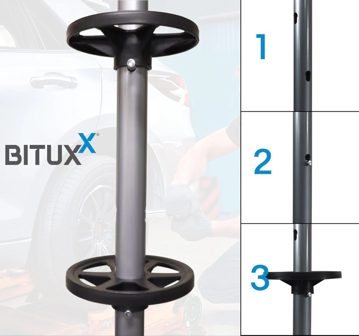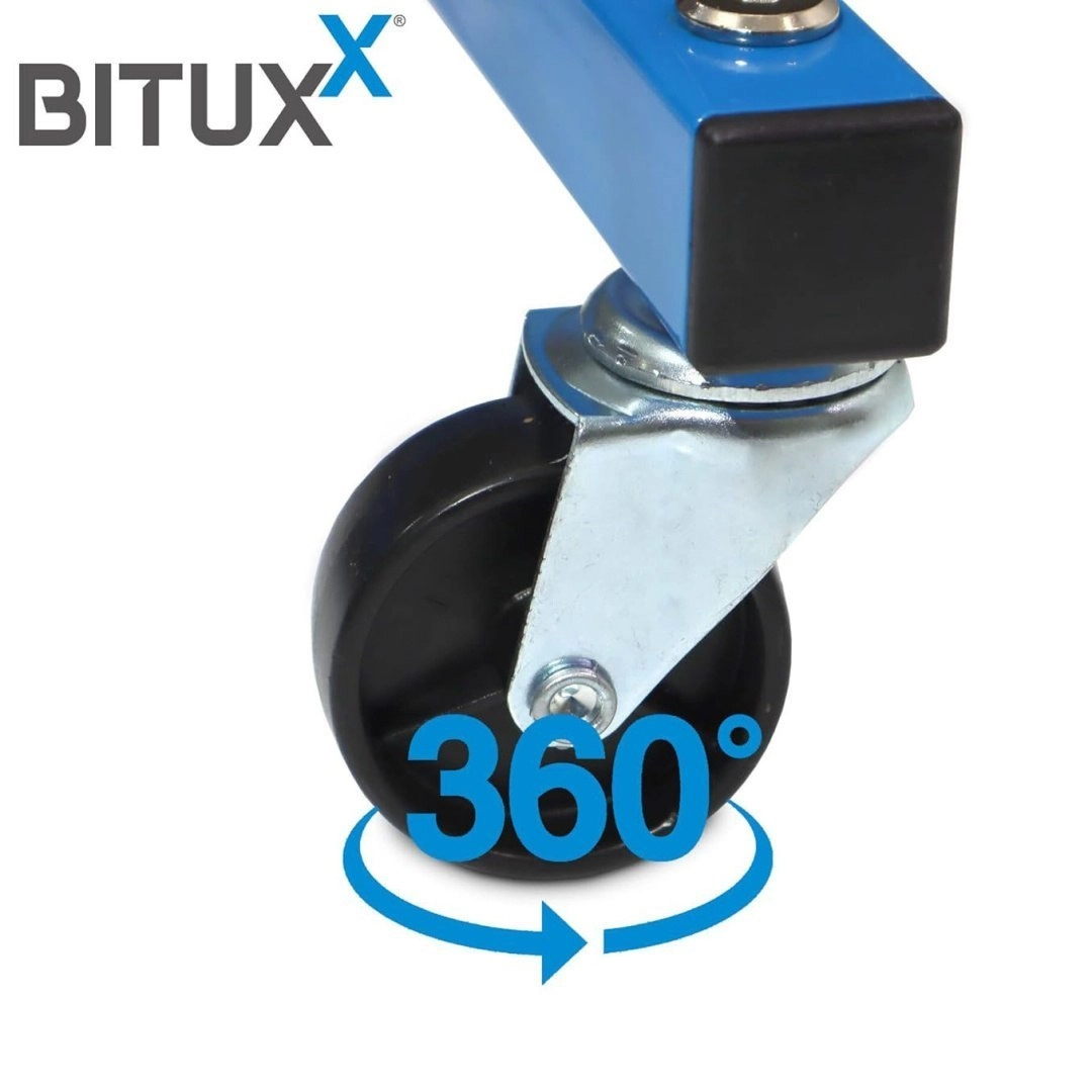Díky kolečkům stojan snadno přesunete v garáži či dílně i v plném naložení. Úsporný design šetří místo a zvyšuje komfort práce.