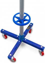 Křížová základna se čtyřmi otočnými kolečky umožňuje plynulý pohyb i v úzkých prostorech. Ideální pro garáže a dílny, kde se počítá každý centimetr.
