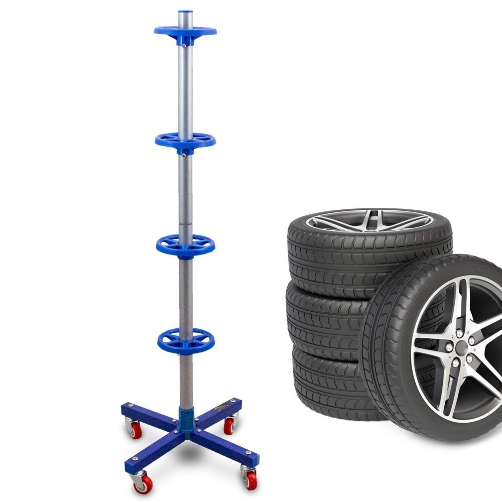 Díky otočným kolečkům stojan snadno přesunete po dílně či garáži. Univerzální provedení umožňuje uložení pneumatik do šířky 225 mm, takže se hodí pro většinu osobních vozů. Kompaktní rozměry šetří místo a přitom udrží až 80 kg.