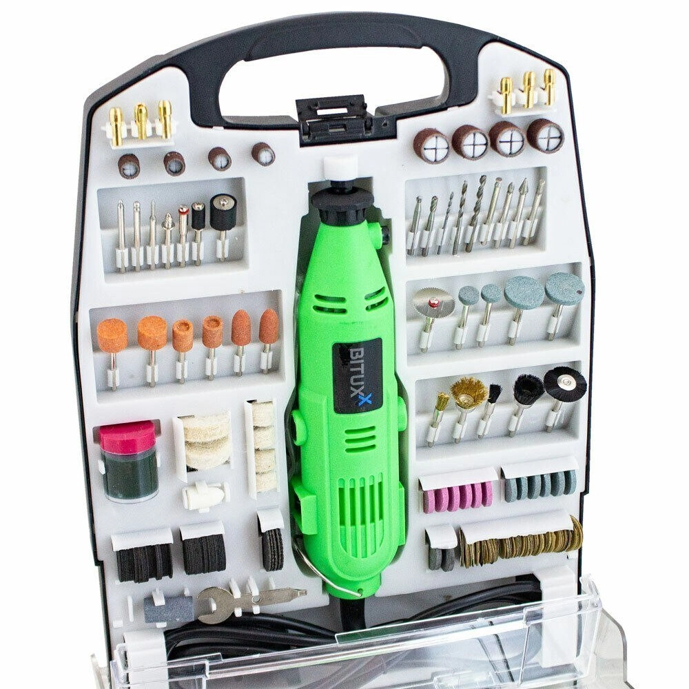 Univerzální mini přímá bruska BITUXX je ideální pomocník do dílny, domácnosti i modelářské pracoviště. Díky výkonu 135 W a široké škále nástavců zvládne jemné i náročnější úkony v dřevě, kovu, plastu i keramice. Kompaktní tělo, nízká hmotnost a plynulá regulace otáček zajišťují přesné výsledky a pohodlné ovládání.